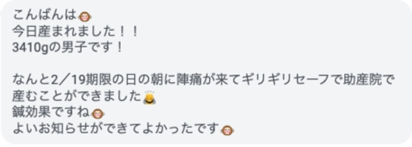 - 3回目の施術で陣痛が促進され男の子が産まれてきた。